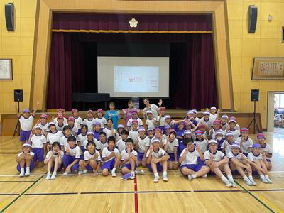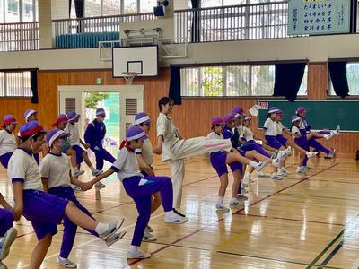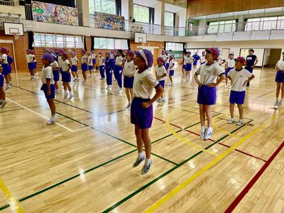 さわやかタイムに『全校ダンス』を見学したOSKのみなさん、あまりのレベルの高さに、高学年には『中学生用』のダンスを教えてくださいました!