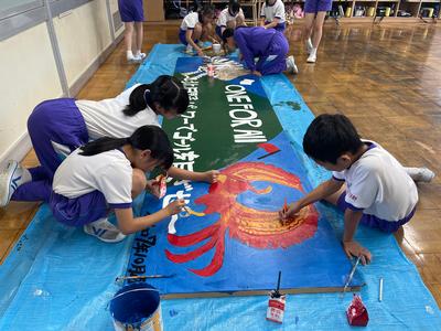 『北日野っ子スポーツフェスティバル』にむけて、サブリーダーの5年生も頑張っています。看板チームが、休み時間も惜しんで制作に取り組んでいました。