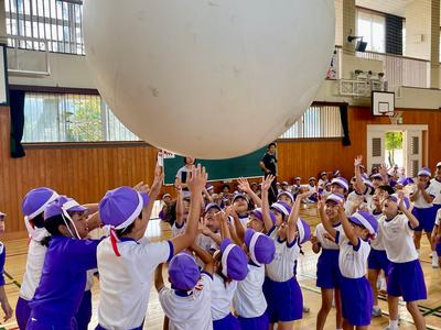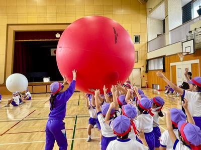 天気は回復したのですが、グラウンドコンディションが悪いので、今日は体育館での全体練習です。屋内でも『大玉送り』は楽しいです!