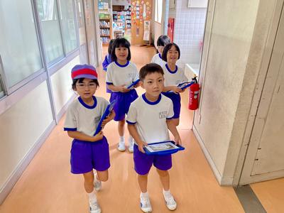1年生が国語の学習『しらせたいな、見せたいな』に取り組んでいました。一人一人がタブレットを持ち、みんなに知らせたいことを撮影していました。どんな文をつけるのか、楽しみです。