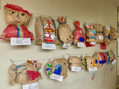 2年生が図工で取り組んだ『くしゃくしゃ ぎゅ』を、校長室前に飾りました。25・26日(土日)に開催される『きたひのまつり』で、地域のみなさまに見ていただくためです。校長室前がにぎやかになりました。