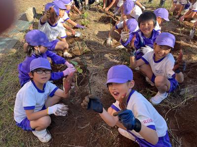 2年生もさつまいもを掘りました。認定こども園きたひのの年長さん、1年生、2年生で行う『第2回焼きいもフェスティバル』は、君たち2年生が企画運営するのだよ。