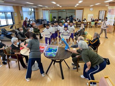 4年生が1年間取り組んでいる福祉学習、今日は『デイサービスセンター芦山』の利用者のみなさんと交流をしました。パフェづくりやゲーム大会など、たいへん盛り上がっていました。今後も、地域のみなさんから、たくさんのことを学んでいきたいです。
