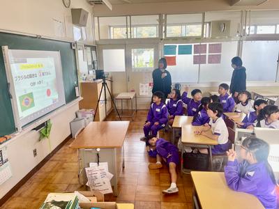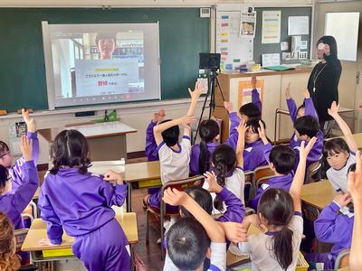 2年生が昼休みに、武生南小学校の外国にルーツを持つみなさんとオンラインで交流しました。『〇×クイズ』や『質問タイム』で盛り上がっていました。『越前市に住んで楽しいことは?』の質問に『日本語をみんなで勉強すること』と答えてくれましたよ。
