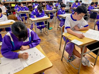 今日、明日、5年生は『SASA2025』に取り組んでいます。『SASA』とは、子供たちの学習状況を把握・分析することにより、学習支援する上での課題を明らかにし、 学習状況の改善に役立てることを目的に、昭和26年から実施している福井県独自の学力調査のことをいいます。今日は国語と算数、明日は社会と理科が実施されます。