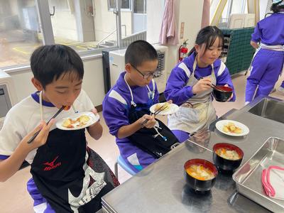 6年生が家庭科で『1食分の献立を立てて調理しよう!』に取り組んでいました。『ベーコン肉じゃが』や『人参しりしり』『グラタン』など、多彩なメニューでした。みなさん、ぜひご家族につくってあげてくださいね。