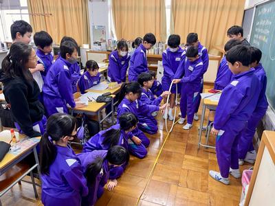 5年生がフラフープを使って『円周』を求めていました。小学生には『体験的な学び』が効果的であるといわれています。タブレットや動画、実際に手を動かして取り組む活動をバランスよく取り入れながら、子供たちが楽しく、そして確実に力を伸ばしていけるようにしていきます。