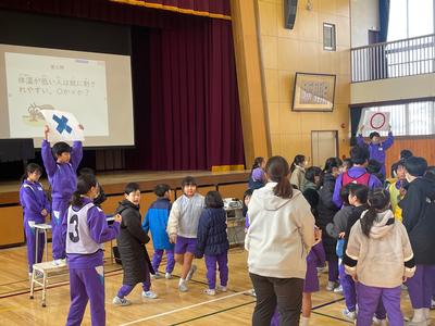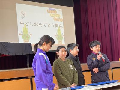 『たてわり班対抗 午年おめでとう集会!』がありました。昨年末に『クリスマス集会』として実施する予定でしたが、感染症の拡大により延期されていました。タブレットを活用し、チーム内の1~6年までが楽しめる工夫された内容でした。児童会のみなさん、ありがとう!