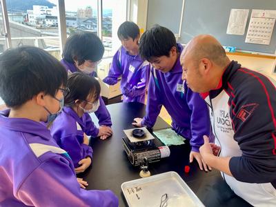 6年生が『炭酸水』の蒸発実験を行っていました。すでに『食塩水』『アンモニア水』などの実験は終えているようです。『におい』をかぐときには、遠くからやさしくあおいでください。