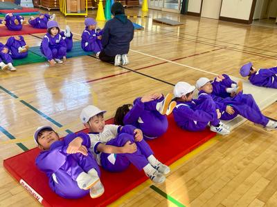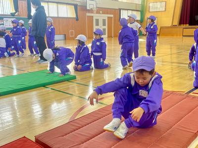 1年生が『マット運動』に取り組んでいます。準備運動の『ゆりかご』は、回転動作の感覚を養うのにとても大切な動きです。ぜひ、ご家庭でも取り組んでみてください。