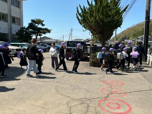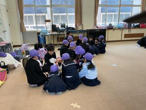 町内子供会があり、登校班や並び方の確認、安全についての話がありました。その後、体育館へ集まり、緊急時の集団下校について話を聞き、まとまり下校をしました。