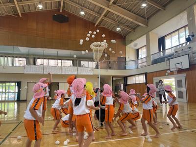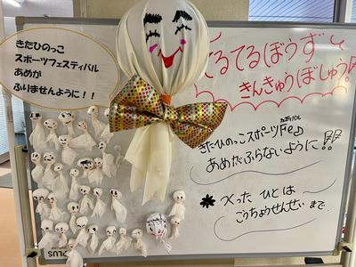 今日は久しぶりの青空です!延期されていた『北日野っ子スポFe』の予行が行われました。6年生が考えた全校ダンスや応援合戦を披露することができました!明日も午前中は『晴れ』の予報です。だって北日野っ子がつくってくれた『てるてるぼうず』がついているから!