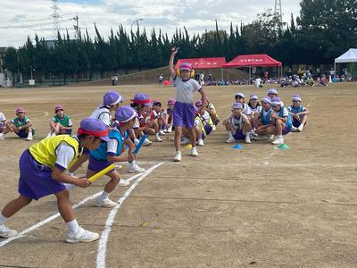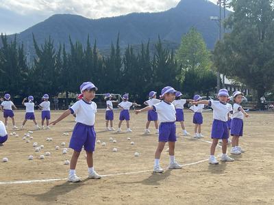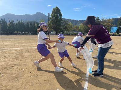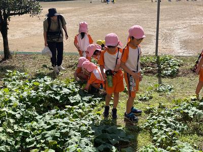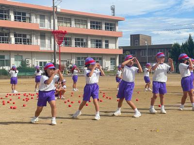 認定こども園きたひののみなさんも、予行練習を見に来てくれました。見てるだけではもったいないので、『こども園チーム』VS『校長・教頭・保健の先生』で『玉入れ大会』を行いました。結果は1勝1敗でした。帰りに1年生と植えたさつまいもの様子もみました。大きくなったさつまいもに感動!みんな『焼きいもフェスティバル』でも『玉入れ』をしようね!