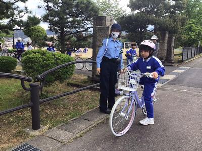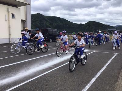 今日は、3、4年生の自転車教室がありました。最初に、警察署の方から自転車の安全な乗り方や点検の仕方などについて教えていただきました。その後、ブレーキの正しいかけ方を実際にやったり、路上での実地訓練を行ったりしました。これから、今日教えていただいたことを、しっかり守りながら自転車に乗り、たった一つしかない命を大切にしていきましょう。警察署や交通指導員の方々、そしてたくさんのボランティアの方々、本当にありがとうございました。