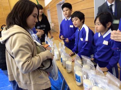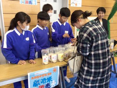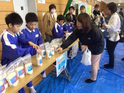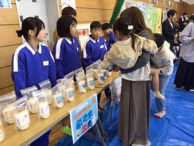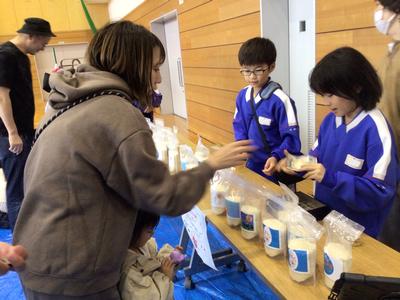 学習発表会の後は地区の「北新庄フェスティバル」です。まず、ふれあいコンサートがありました。今年は、福井ウィンドブラスさんの演奏を聴きました。「ドレミの歌」「ライラック」「アフリカンシンフォニー」を聴いた後、吹奏楽の伴奏に合わせて「つばさをください」を全校で歌いました。「ジャンボリーミッキー」や「マツケンサンバ」の前奏が始まると、みんな立ち上がって踊り出し、盛り上がりました。5年生の「いちほまれ」の販売も行われました。なんと1時間で200袋も売れました。ご協力ありがとうございました。