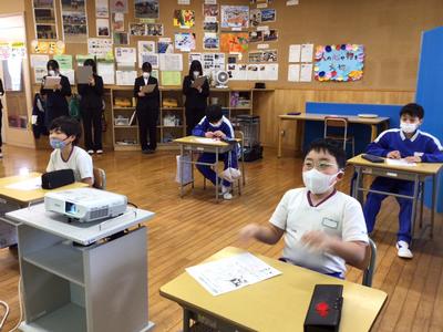 今日は、仁愛大学3年生の学生さんたちが学校見学に来られました。中には、将来、教員を目指している学生さんもたくさんおられ、真剣な表情で子どもたちや教員の様子を見学していました。子どもたちも普段以上に活溌に活動していました。