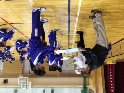 今日のはつらつタイムに、感謝のつどいが行われました。いつもお世話になっている調理員さんや用務員さんに手作り賞状と来年のカレンダーを渡し、感謝の気持ちを伝えました。自分たちを、いろいろな場面で支えてくれる人たちへの感謝の気持ちを忘れずに過ごしていきたいですね。