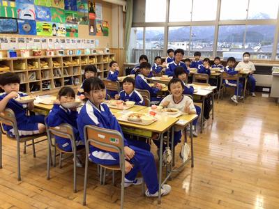 今週は給食週間です。これまで、鉄分たっぷりアイアン献立、カルシウムたっぷり歯ッピー献立、塩分少なめ省塩献立、こにしめ、うち豆汁、水ようかんなどのふるさと献立と、毎日調理員さんの愛情たっぷりの給食をいただいてきました。今日はみんなが大好きなハヤシライスでした。さらに、今日は縦割り班で食べるなかよし給食でした。昼休みは、そのまま縦割り班で6年生が企画したレッツハッピータイムとしてフルーツバスケットや風船バレーなどで楽しく遊びました。