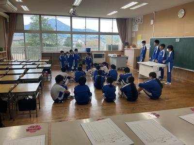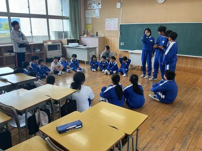 大休みになかよし班の初めての顔合わせがありました。6年生がリーダーとなって、1人ずつ自己紹介をしました。今年1年、このなかよし班でいろいろな活動をしていきます。