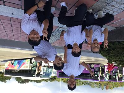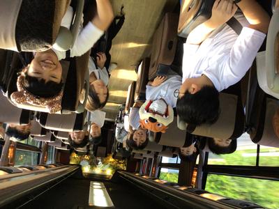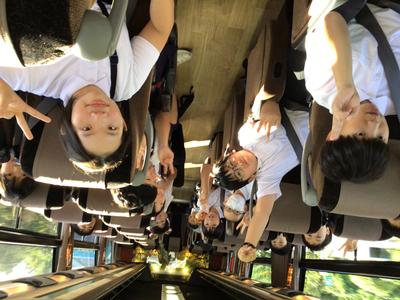 神田と大津でトイレ休憩をしました。バスの中では、ガイドさんから提案された「この人、誰だ?」の他己紹介で盛り上がったり、北陸新幹線が走るのを見て歓声が上がったり、担任の先生のカラオケでアンコールがかかったり、全員でカラオケをしたりと元気に楽しく過ごしています。