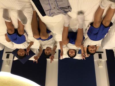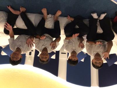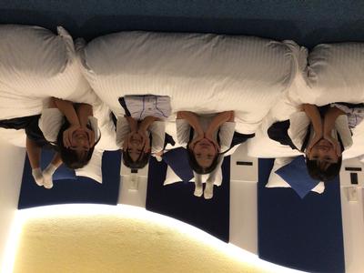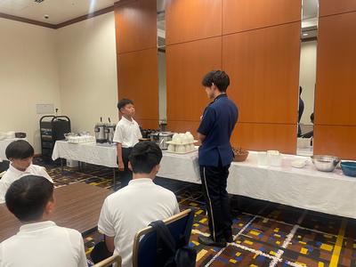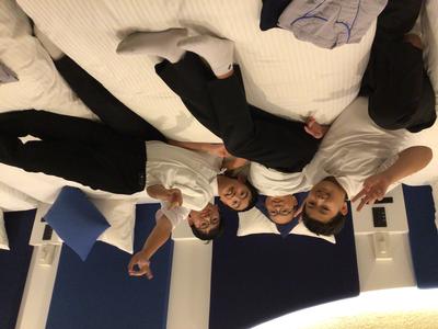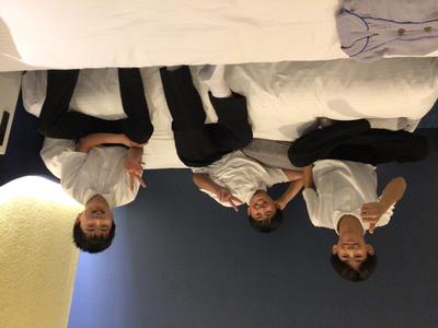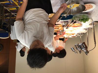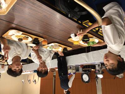 ホテルに着き、夜ご飯を食べました。バイキングということで、子どもたちは品定めに時間をかけていました。たこ焼きやエビチリなどたくさんのおかずがありましたが、一番人気はなんとうどんでした。デザートも食べ放題で、いつまでも食べていました。その後、部屋に入り、楽しいひとときを過ごしています。