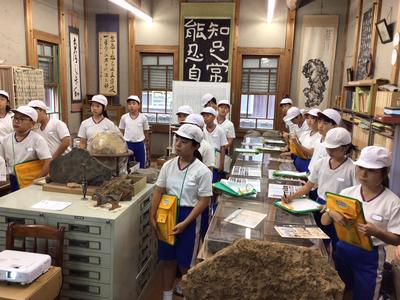 今日は、中新庄町の市川鉱物研究室を見学しました。顕彰会の小林先生のお話を聞いた後、市川新松先生が研究のために使った道具や収集した鉱物などを閲覧しました。様々な種類の鉱物がたくさん展示されており、地元にこんな素晴らしい研究室があることに驚いていました。市川新松先生のように熱意や探究心をもって学問に打ち込めるといいですね。