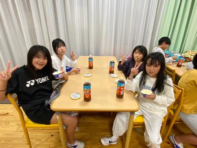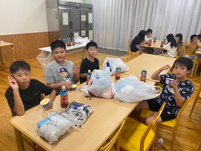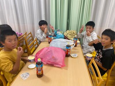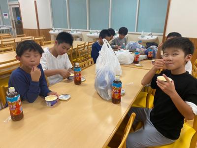 お風呂上がりに、みんなでアイスクリームを食べました。一日の疲れが吹き飛ぶようなひととき。今日一日がんばった5年生です。明日、カヌーに乗れますように。