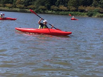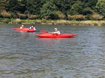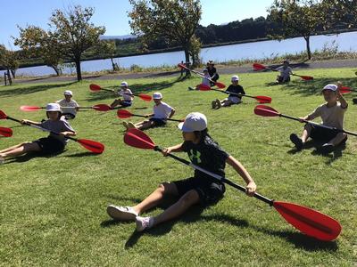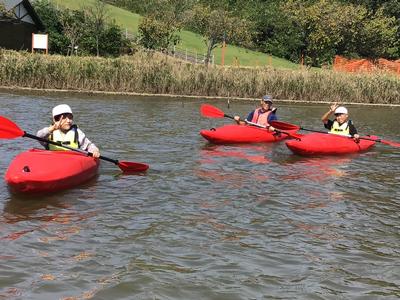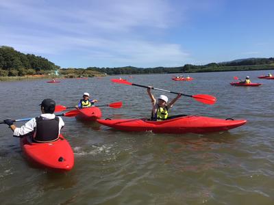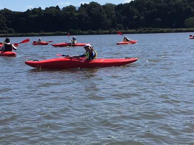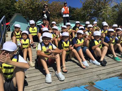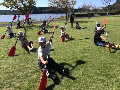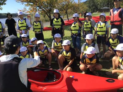 いよいよ活動の最後は、カヌーチャレンジです。カヌーの経験者はわずかで、パドルを扱うのも初めての子がほとんどでしたが、全員すいすいと漕ぐことができました。風もとても気持ちよかったです。最後まで誰も湖に落ちることなく、体験を終えることができました。活動後は、カヌーの水抜きをして、艇庫まで運び片付けました。ハードな活動でしたが、子どもたちはいたって元気です。この後、昼食を食べて、芦原青年の家を後にします。