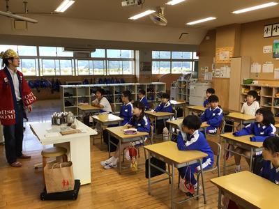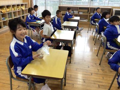 マルマワみその河崎さんが来てくださって、味噌や醤油についての話をしてくださいました。味噌は、大豆と麹と塩からできることが分かりました。また、大豆と小麦と塩を混ぜたものを実際に見せていただき、それらを熟成させて醤油になることが分かりました。国語の「すがたをかえる大豆」の授業で学習していることと結びつけて、考えることができました。