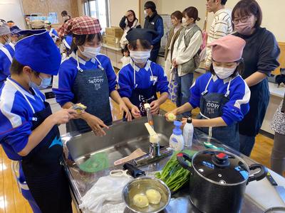家庭科の時間に調理実習を行いました。今回は、じゃがいもを1人1個ずつ皮むきをして「ゆでじゃがいも」を作り、あわせて「ほうれん草のお浸し」にも取り組みました。安全に気をつけながら、包丁やピーラーの使い方、ゆで加減の見極めなどを学び、どの子も真剣に取り組んでいました。自分で作った料理の味に、子どもたちは満足そうでした。