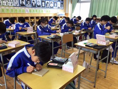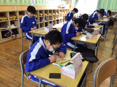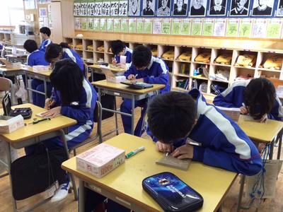 6年生の図工では、卒業制作として、タブレットスタンドボックスを作っています。ボックスの蓋の部分に好きな絵を描き、彫刻刀で彫り、立体的になるようにがんばっています。どの子もとても一生懸命に取り組み、小学校の思い出となる作品になりそうです。出来上がりがとても楽しみですね。