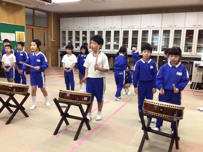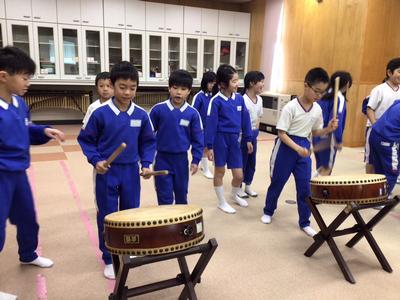 音楽の「ちいきにつたわる音楽でつながろう」の学習で、祭りばやしについて学習しています。今日は、祭りばやしの音楽のリズムを唱歌で歌ったり、太鼓を打ったりしました。唱歌を歌いながら、リズムよく太鼓を打てるようになりました。