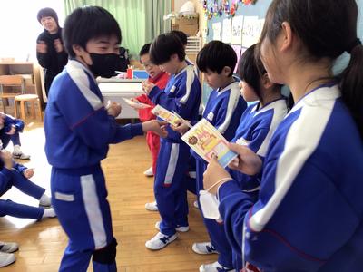 今日は「お誕生会(1~3月生まれ)」を行いました。そして今回は、居住地校交流として特別支援学校の友達も一緒に参加しました。はじめに、お誕生月の友達を紹介し、みんなで拍手をしてお祝いしました。そのあとは、各グループが考えたゲーム(しっぽとりゲーム、オセロ、爆弾ゲーム、誕生日クイズなど)をしました。活動中、特別支援学校の友達にも進んで関わり、優しく声をかける姿がたくさん見られ、思いやりの気持ちが感じられる温かい交流となりました。
