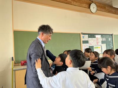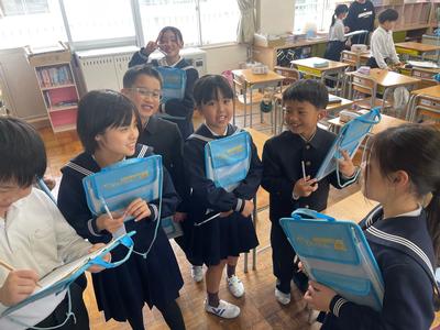 4年生が友だちビンゴに取り組んでいました。挨拶をした後にじゃんけんをして、『ポテトチップスが好きな友達』や『体を動かすのが好きな友だち』を探します。校長も飛び入り参加しました!
