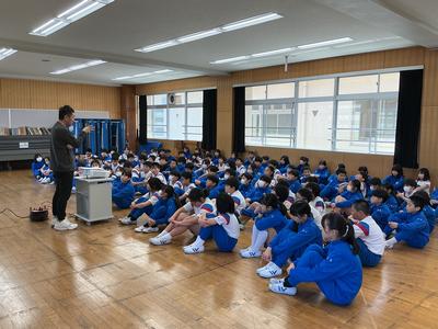 5年生がはじまりました。学年集会で、学年目標などの話をしました。