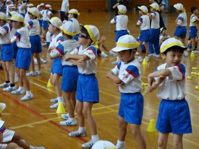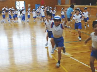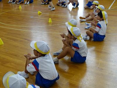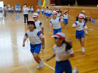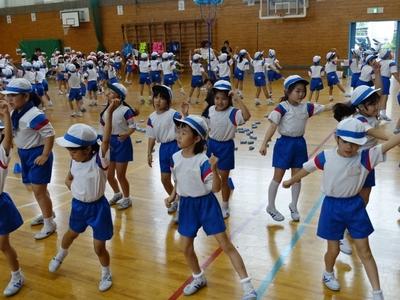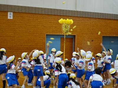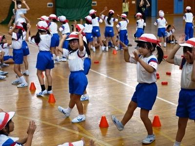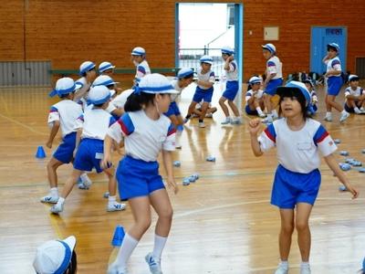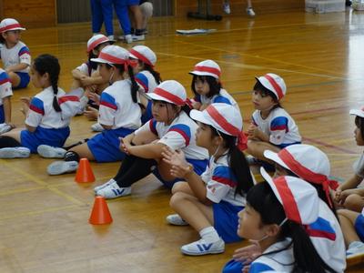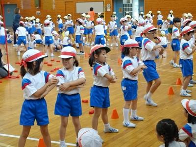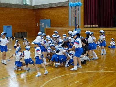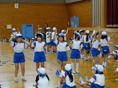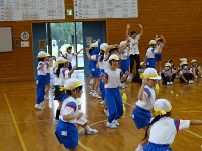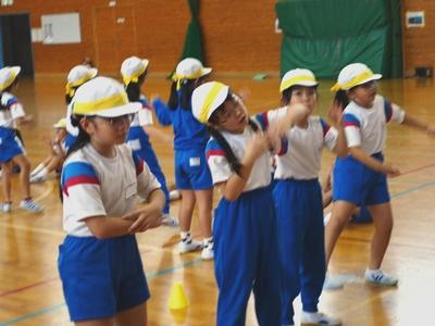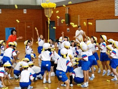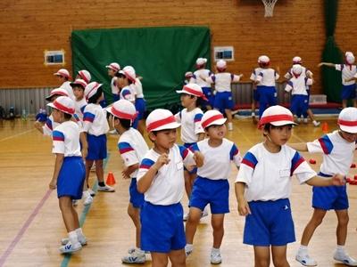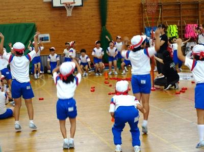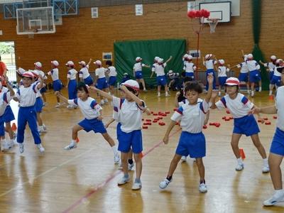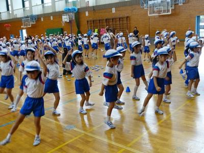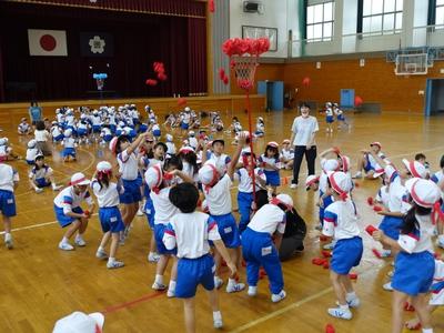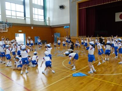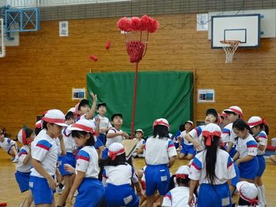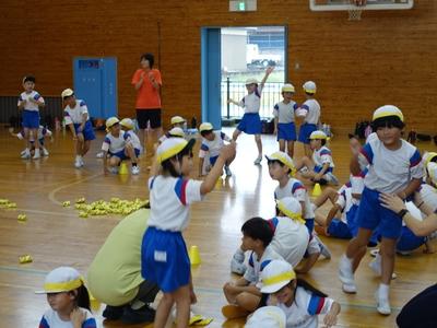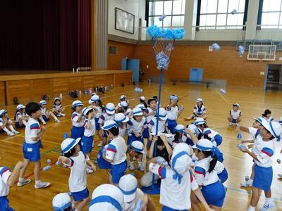 1,2年生合同で、体育大会の種目(ダンシング玉入れ)の練習を行いました。前回よりも入った玉の数が多くなりましたよ。