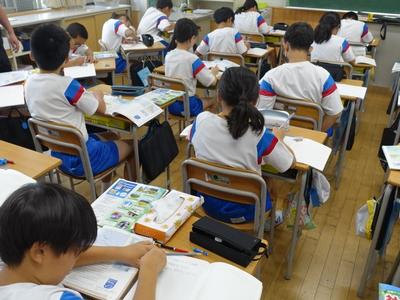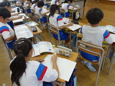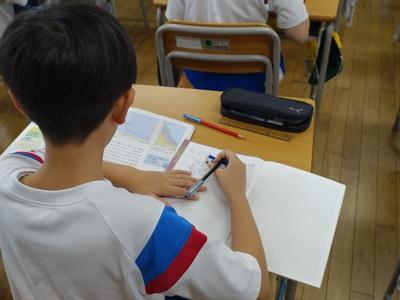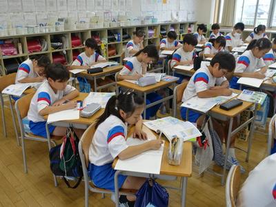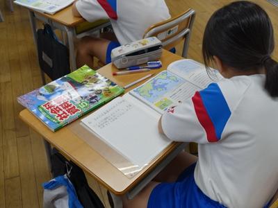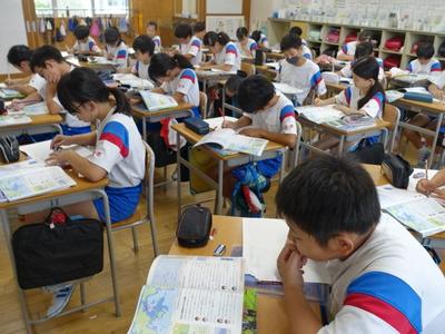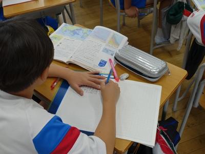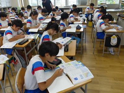 5年生社会の授業風景です。今日は「日本の水産業がかかえる課題」について考えました。下の写真は、自分で調べたことをノートにまとめているところです。