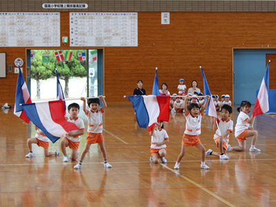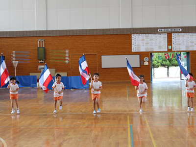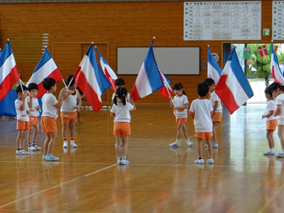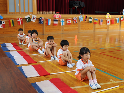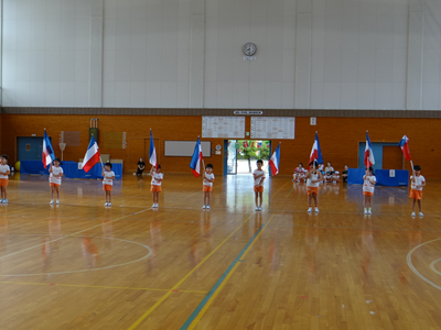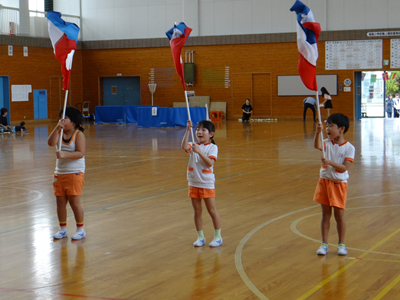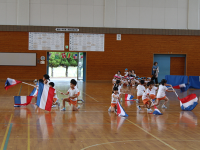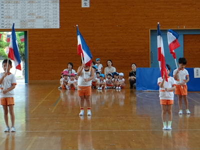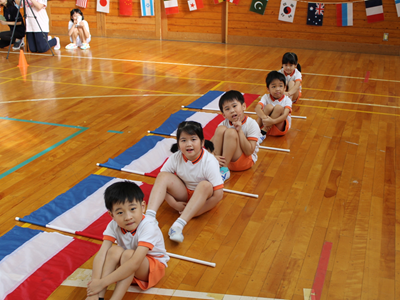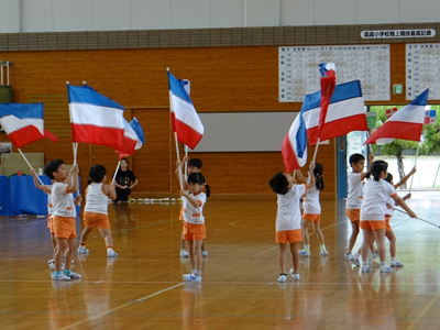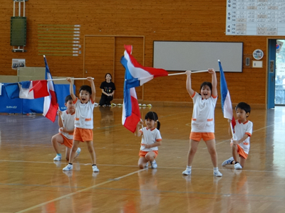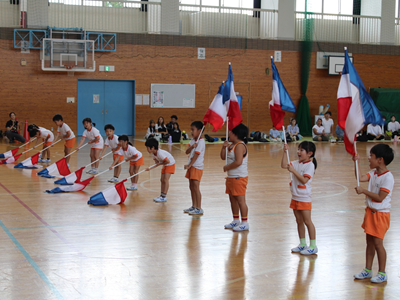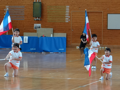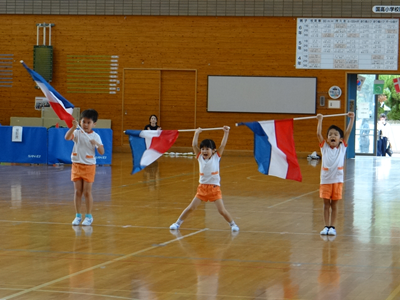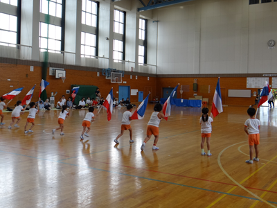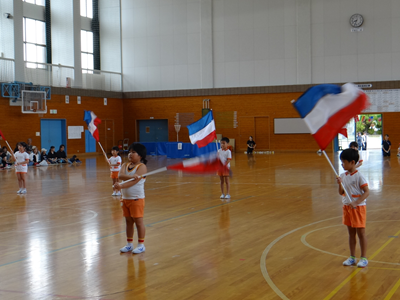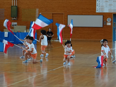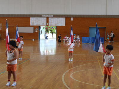 今日27日(土)は国高幼稚園の運動会です。たくさんの保護者の皆様にお越しいただき、子どもたちはいつもより張り切っていましたよ。それでは、オープニングの様子からお届けします。