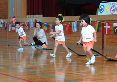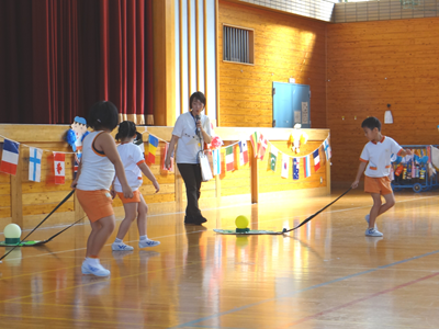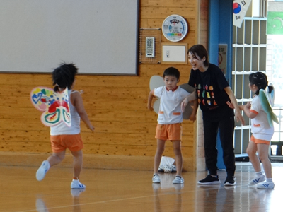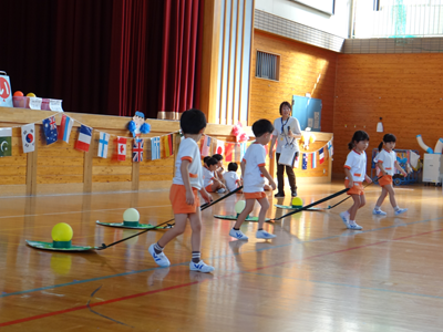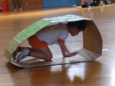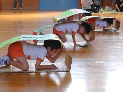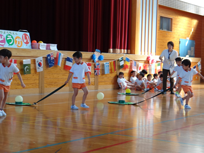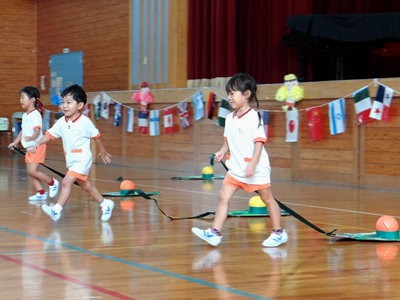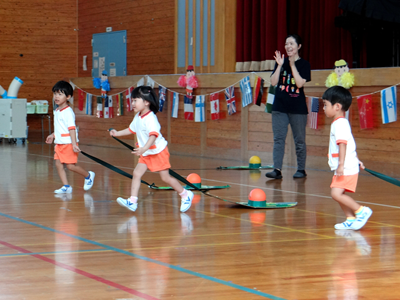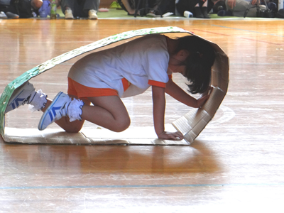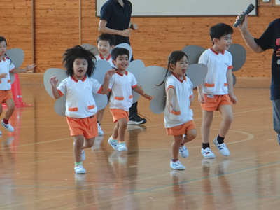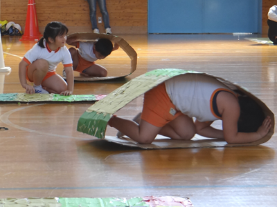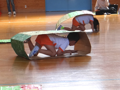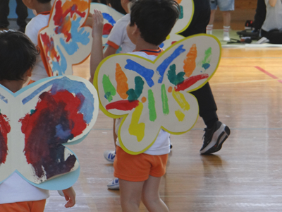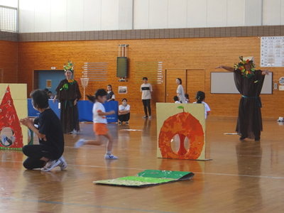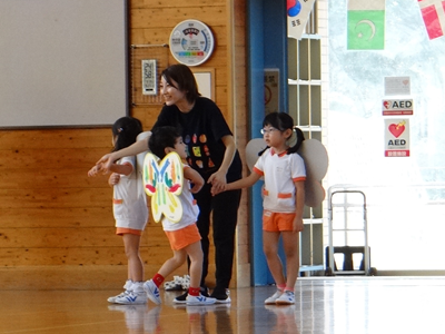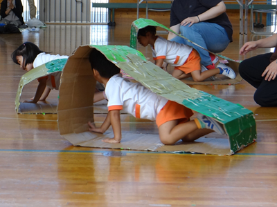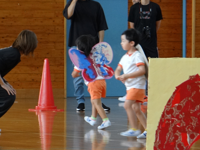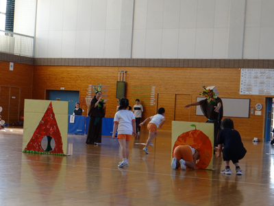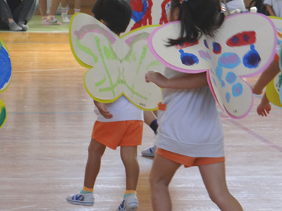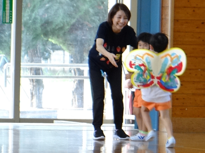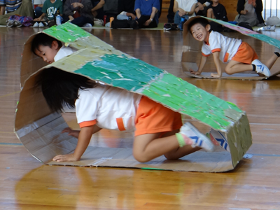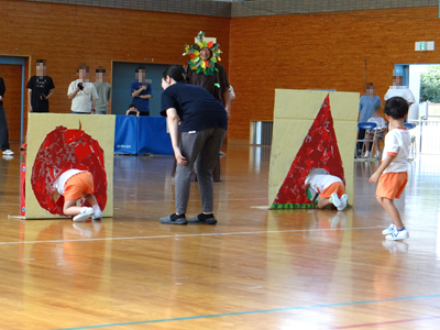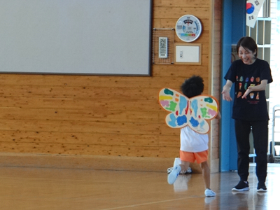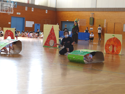 次の種目は、『はらぺこあおむし』です。障害物競走ですが、最後はチョウに変身しますよ。