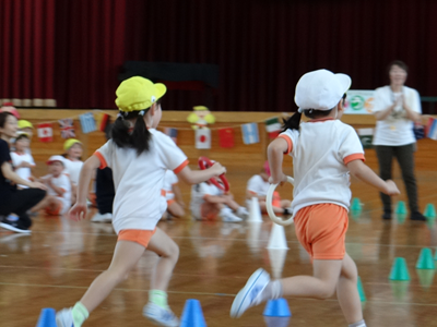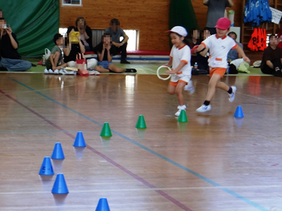 最後の種目は、リレーです。大きな声援のおかげで、いつもより速くなっています‼