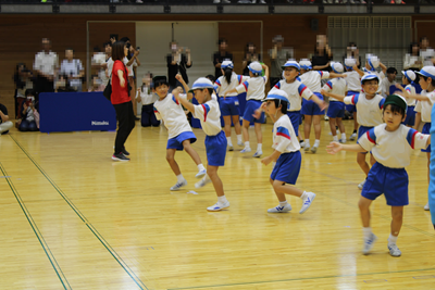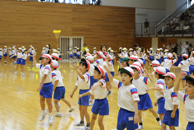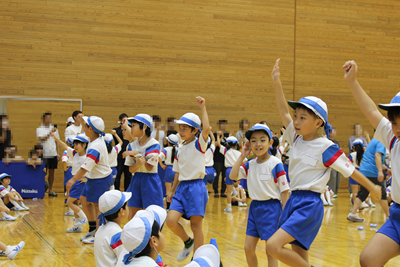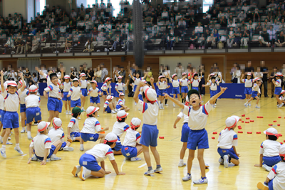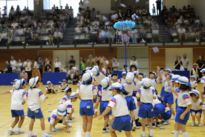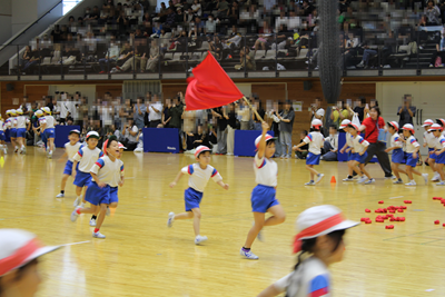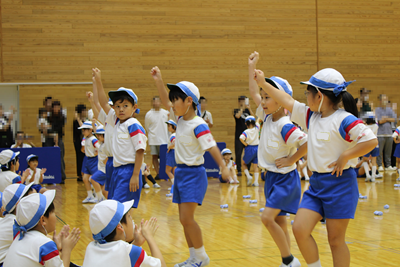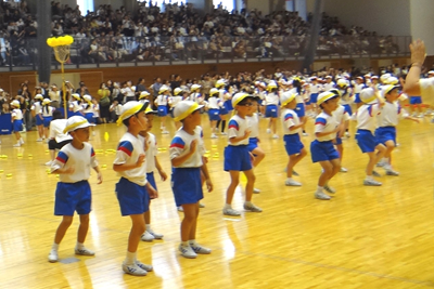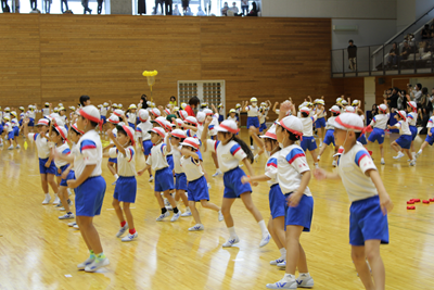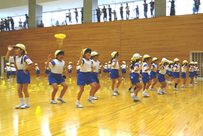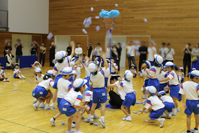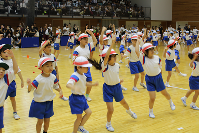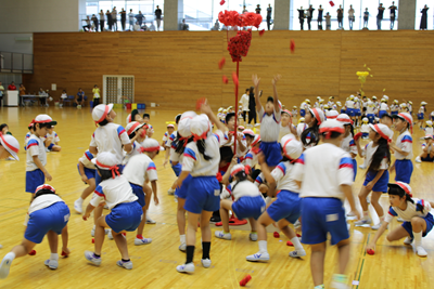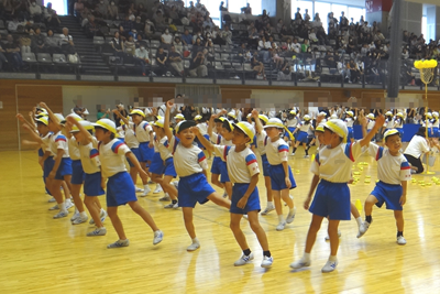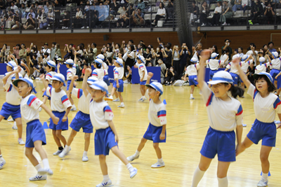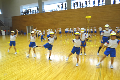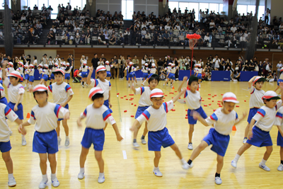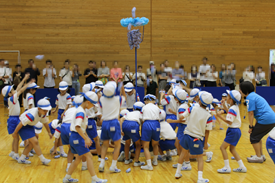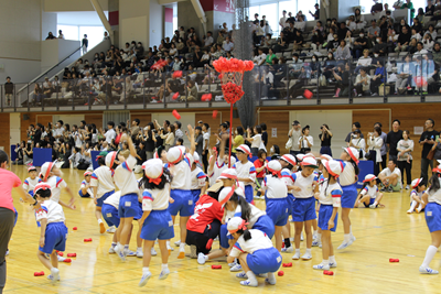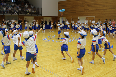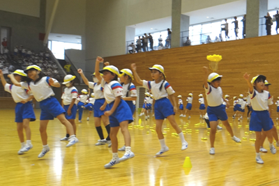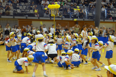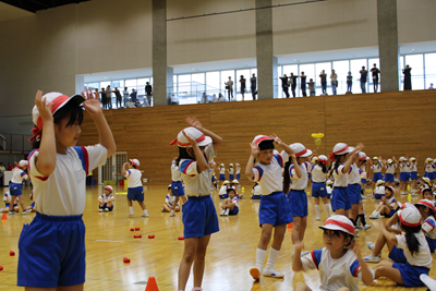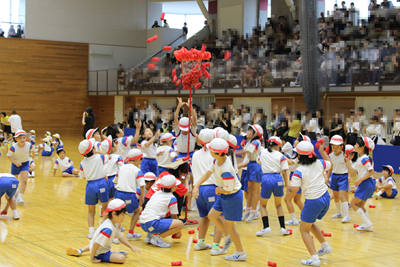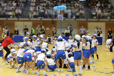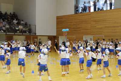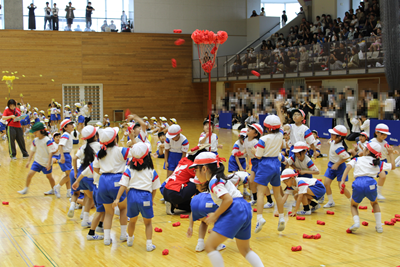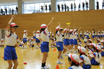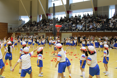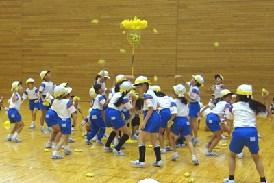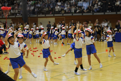 1,2,年生学年種目「ダンシング玉入れ」が始まりました。