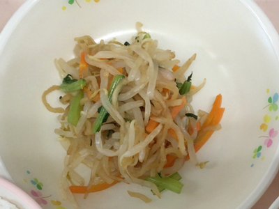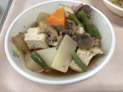 今日の献立は、十五夜献立でした。ごはん(麦入り)、牛乳、芋煮、青菜のおひたし、十五夜デザート。秋を感じる芋煮が絶品でしたよ。