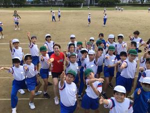 昼休みには、5年生たちと一緒におにごっこもしてくださり、子どもたちはとても大喜びでした。