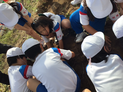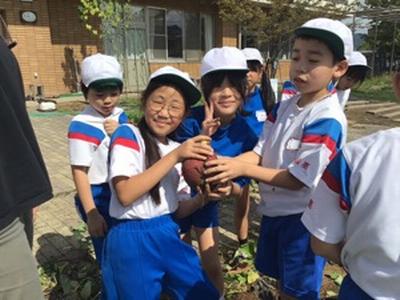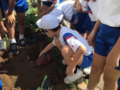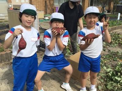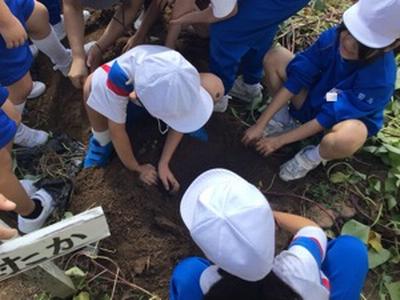 「巨大さつまいもだ!」「こっちにもあるよ!みんな手伝ってー!」など、あちこちで声が上がり、大にぎわいで楽しく収穫しました。