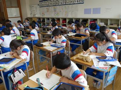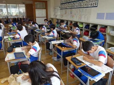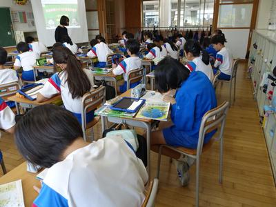 5年生社会の授業風景です。今日は、日本各地でいろいろな工業が営まれていることを学習しました。下の写真は、今日の授業で分かったことをノートにまとめている(振り返り)ところです。