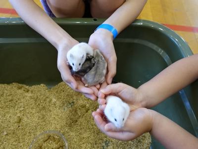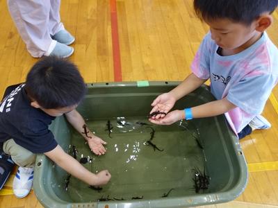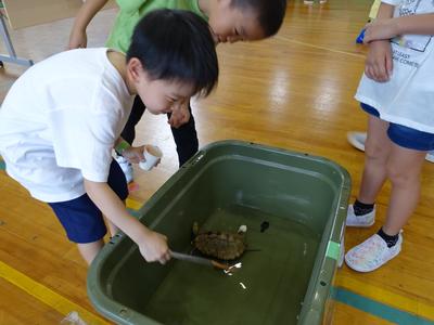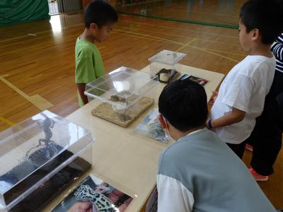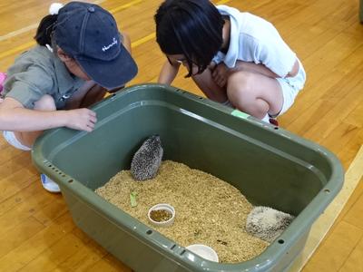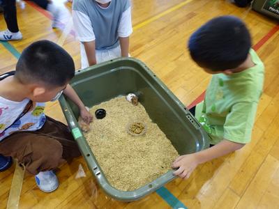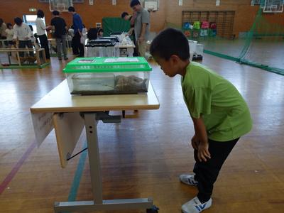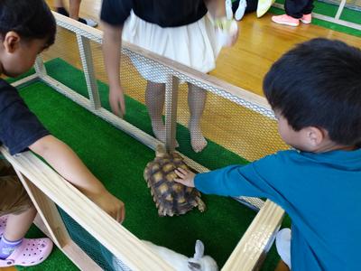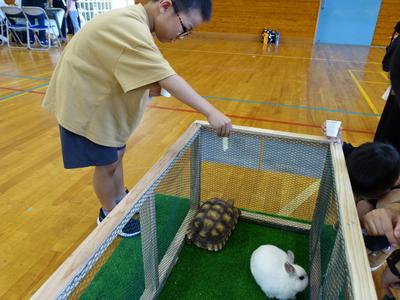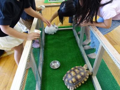10月18日(土)に、PTA教養部主催の「ふれあいミニ動物園」が開催され、小学校の体育館には、ハムスター、ウサギ、カメの他、珍しいトカゲやヘビ、オウム、ハリネズミなど、たくさんの動物がやってきました。動物にエサをあげたり直接触れあったりするすることで、生き物の命の尊さを学ぶ機会になりました。教養部の皆さん、子どもたちに楽しい時間を提供して下さり、ありがとうございました。(保護者の方も楽しそうでしたよ)
