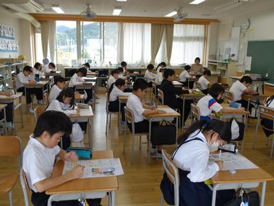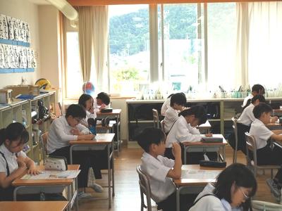 5時間目に5年生の教室を覗いたら、ちょうど社会のテストをしているところでした。さすが5年生、みんな落ち着いて取り組んでいますね。出す前には、もう一度確かめましょうね。