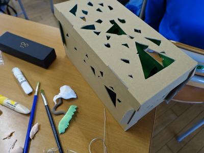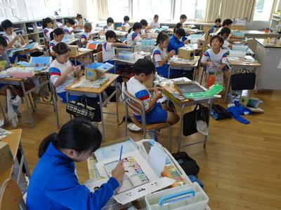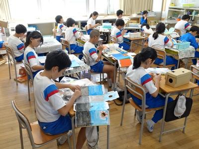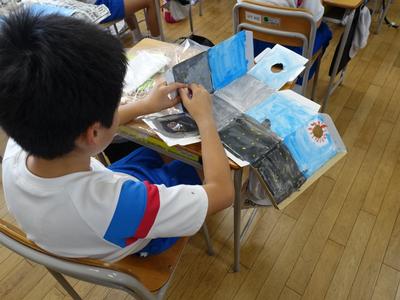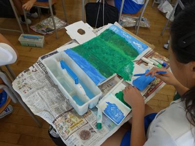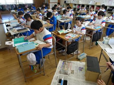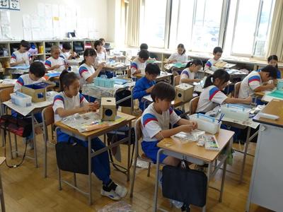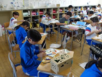 5年生図工の授業風景です。今は「のぞいてみると」という作品作りに取り組んでいます。どのようなものかを聞いたら、①まず箱を作り、②その箱の中をのぞいてみると、楽しい仕掛けが広がっている と教えてくれましたよ。なるほど‼ 出来上がりが楽しみですね~。