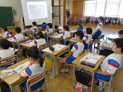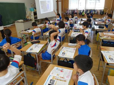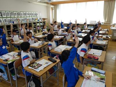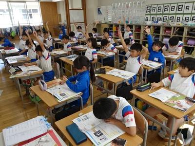 3年生理科の授業風景です。今日は、日なたと日かげで地面の温かさがどのくらい違うのかを学習しました。下の写真は、自分の考えを発表しているところです。