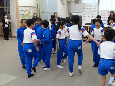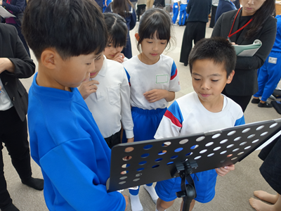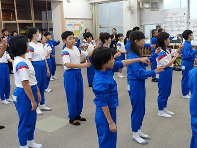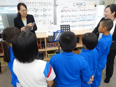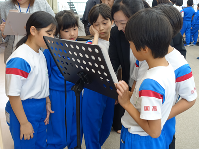 本校にて『県音楽教育研究大会』が行われ、県内から多くの先生方が来校されました。公開授業として行われたのは、4年生の音楽の授業です。4年生の子どもたちは、旋律の特徴を感じ取りながら強弱表現の工夫を考え、『とんび』を気持ちよく歌いました。